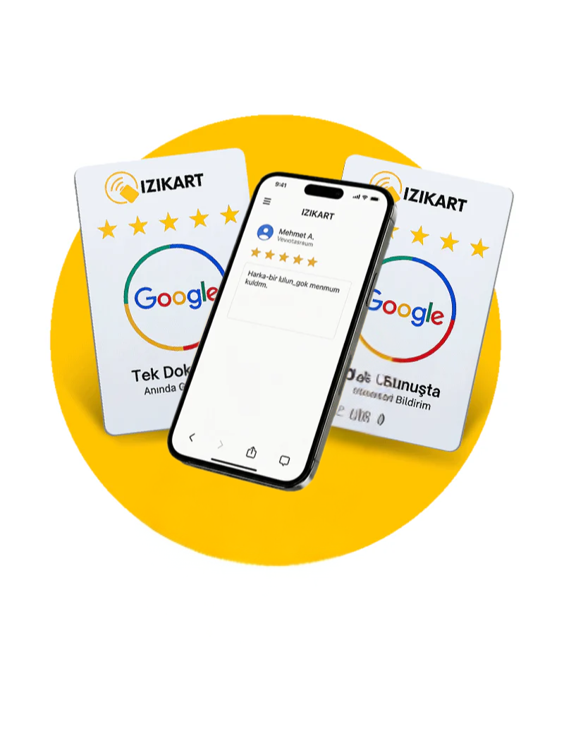 İziKart; işletmenizin Google veya Tripadvisor sayfasına doğrudan yönlendiren NFC teknolojili bir karttır.