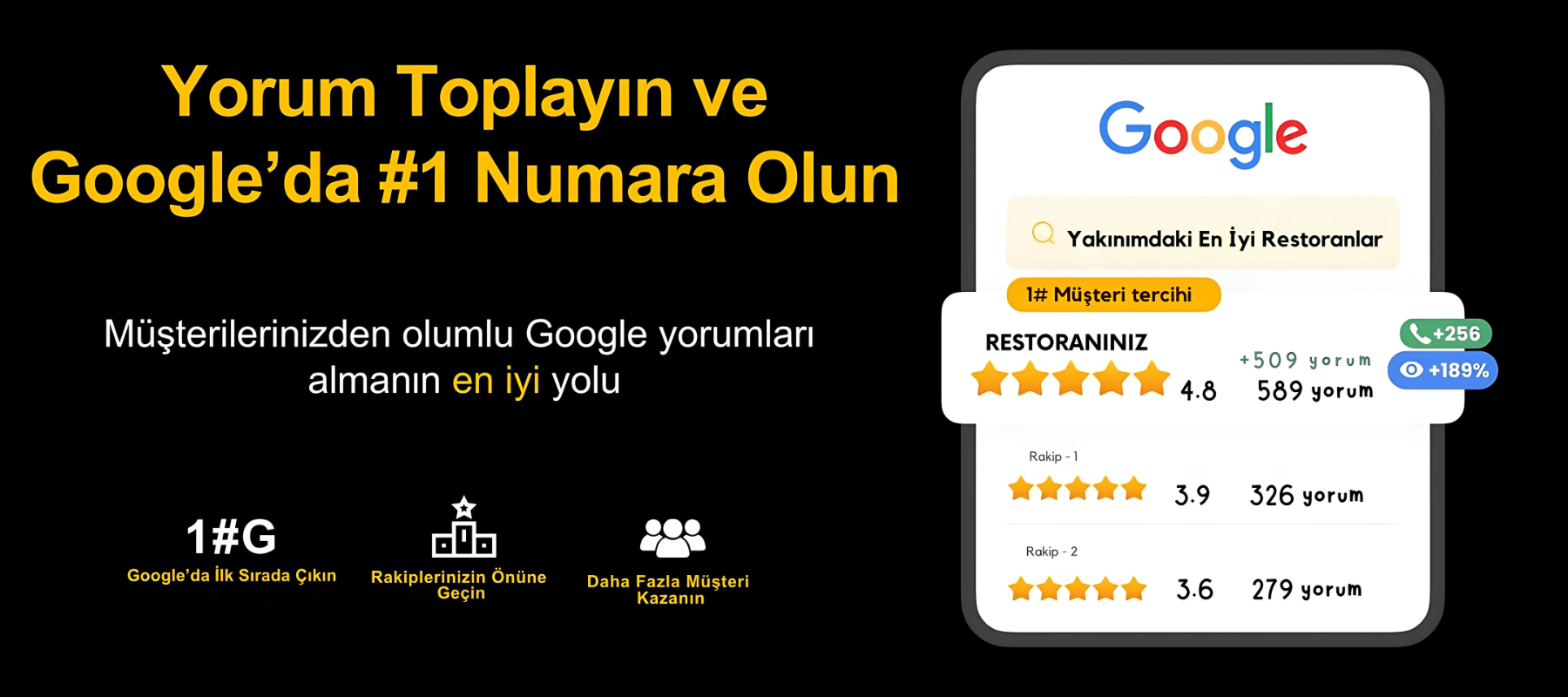 Daha fazla olumlu yorum = Google’da daha yüksek sıralama ve daha fazla trafik, hem de hızlı.