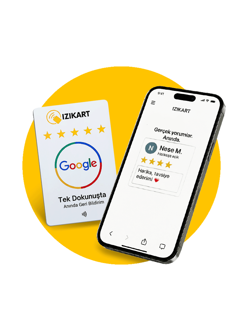 İziKart; işletmenizin Google veya Tripadvisor sayfasına doğrudan yönlendiren NFC teknolojili bir karttır.