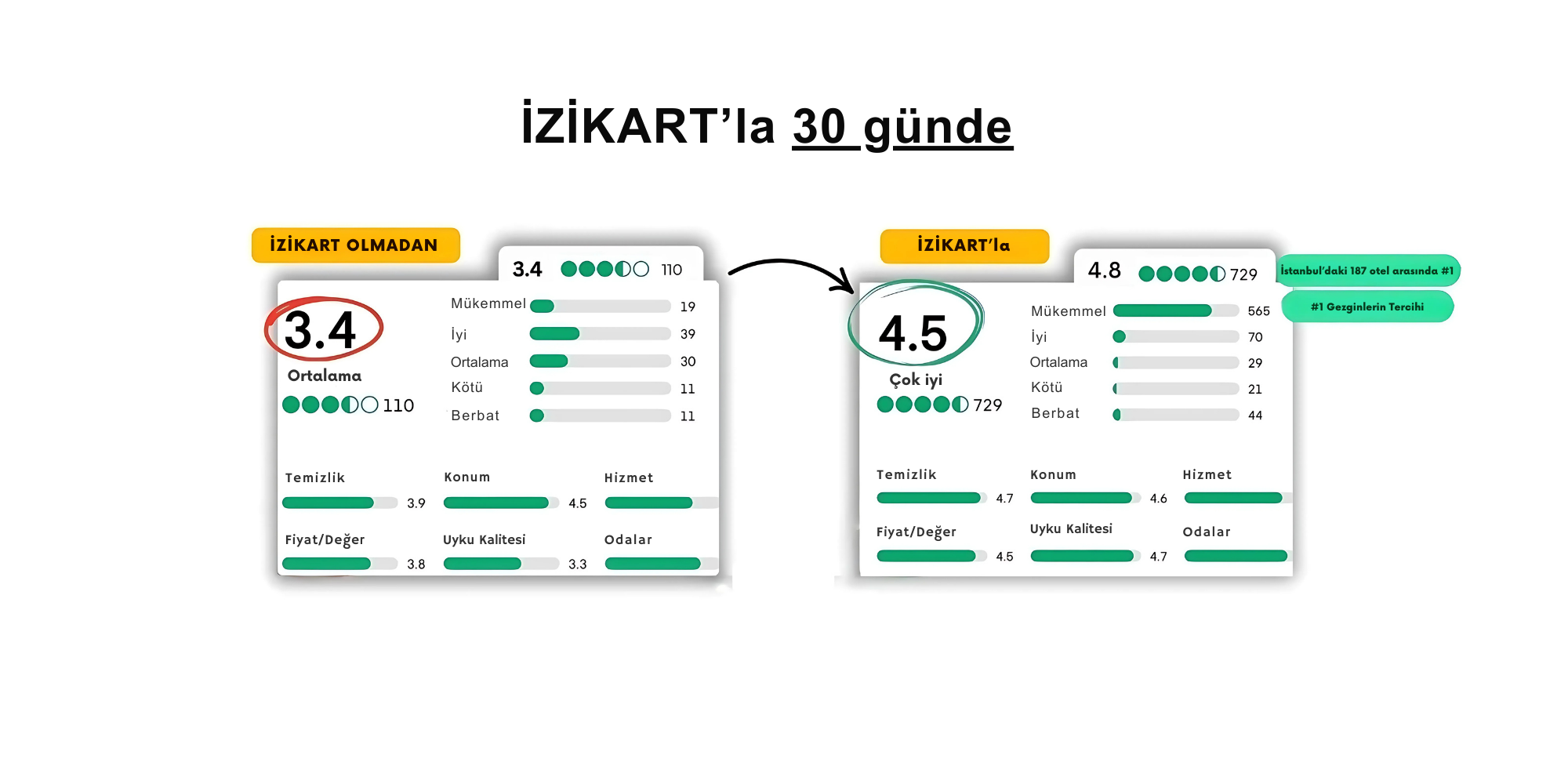 Konaklamaları bitmek üzereyken ve deneyimleri hâlâ tazeyken, onlara İZİKART’ı verin — mutlu bir misafiri güçlü bir yoruma dönüştürmenin en kolay yolu.