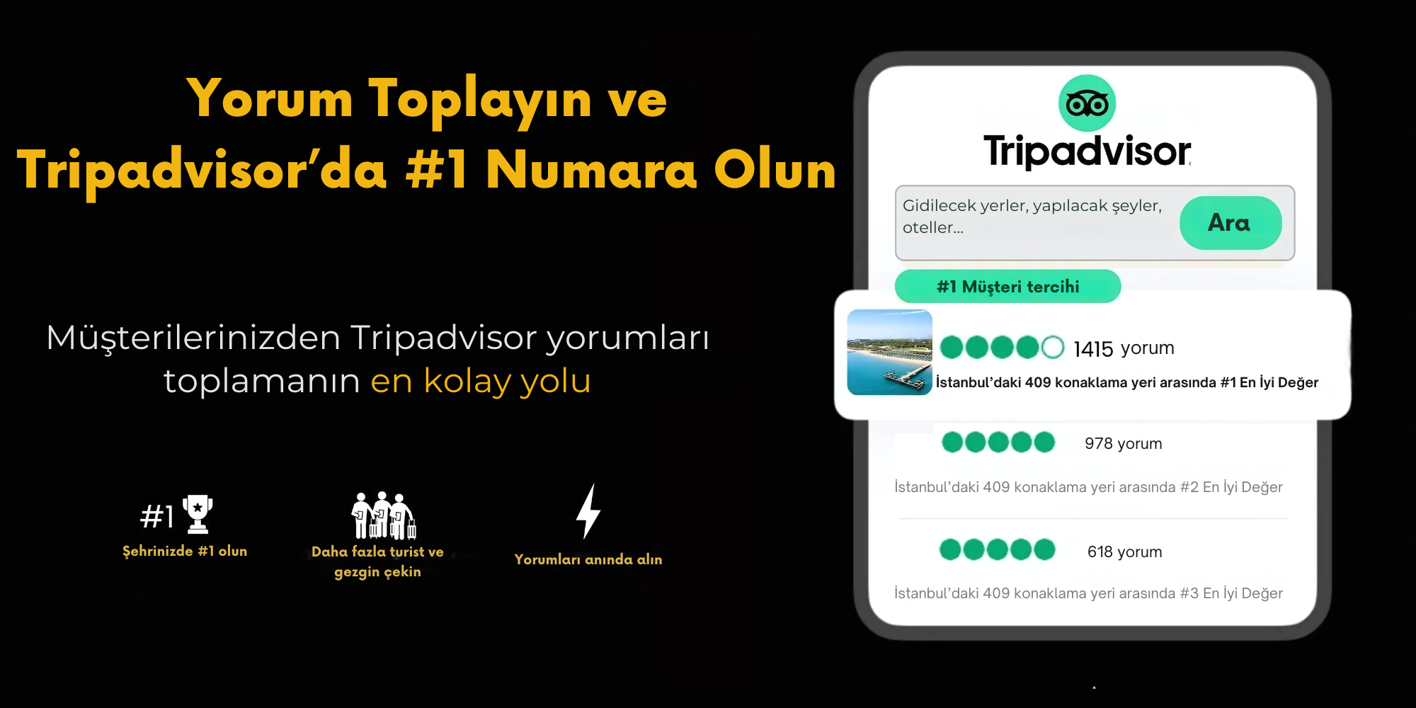 Daha fazla gerçek yorum = daha güçlü TripAdvisor sıralaması, daha yüksek görünürlük ve gelecekteki gezginlerden daha çok rezervasyon.